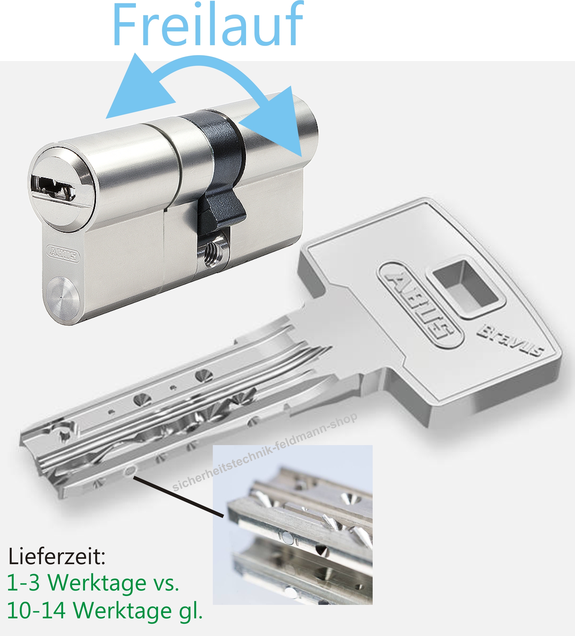 - ohne N+G (Not- u. Gefahrenfunktion), Zylinder ist nicht schließbar wenn auf der anderen Seite ein Schlüssel steckt