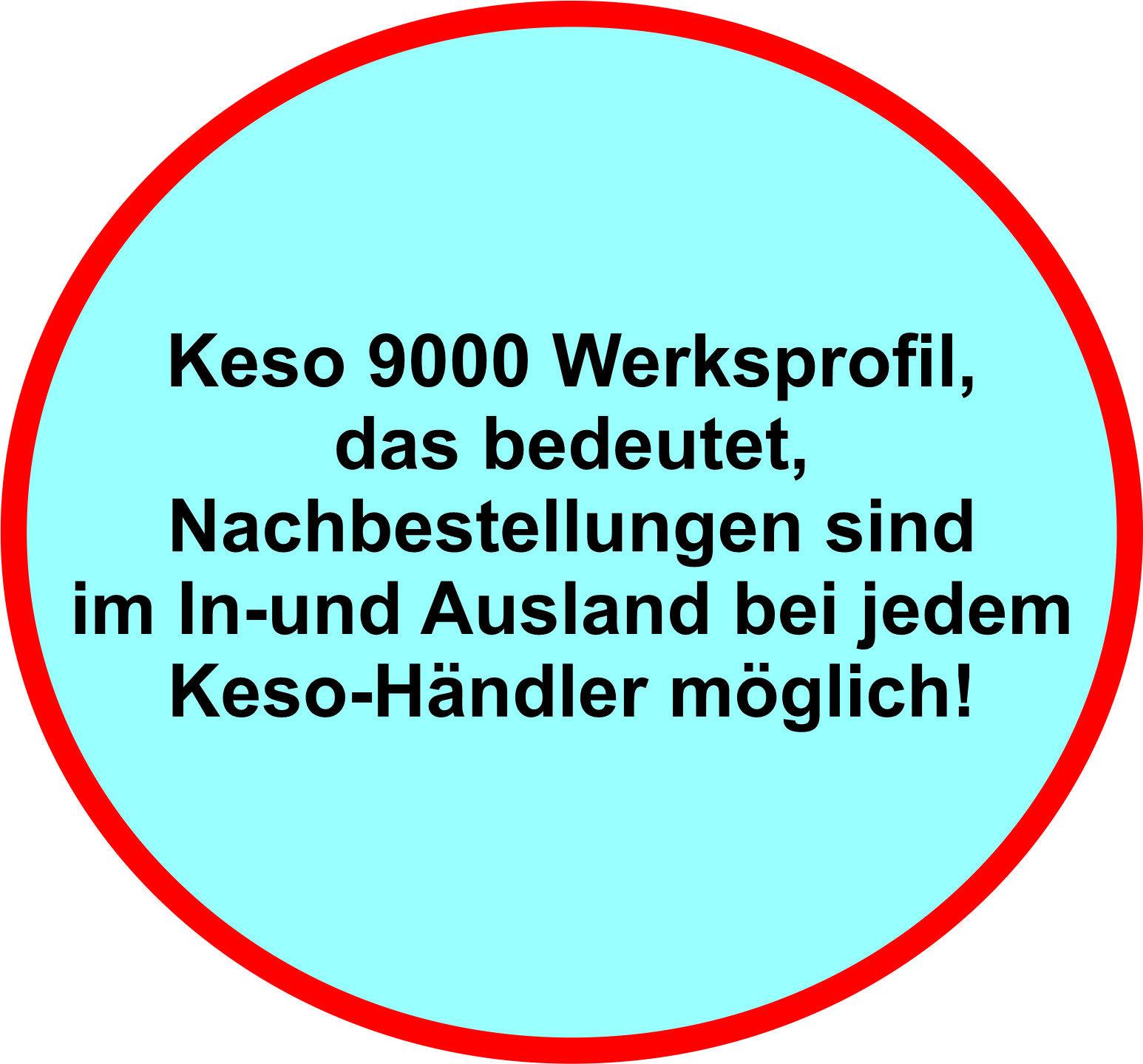 KESO 9000Ω2 Zylinder werden ausschließlich im Werksprofil geliefert.zählen zu den sichersten Zylindern der Welt. Die Produkte erfüllen je nach Sicherheitsstufe strenge VdS-Normen und sind nach EN 1303 zertifiziert.